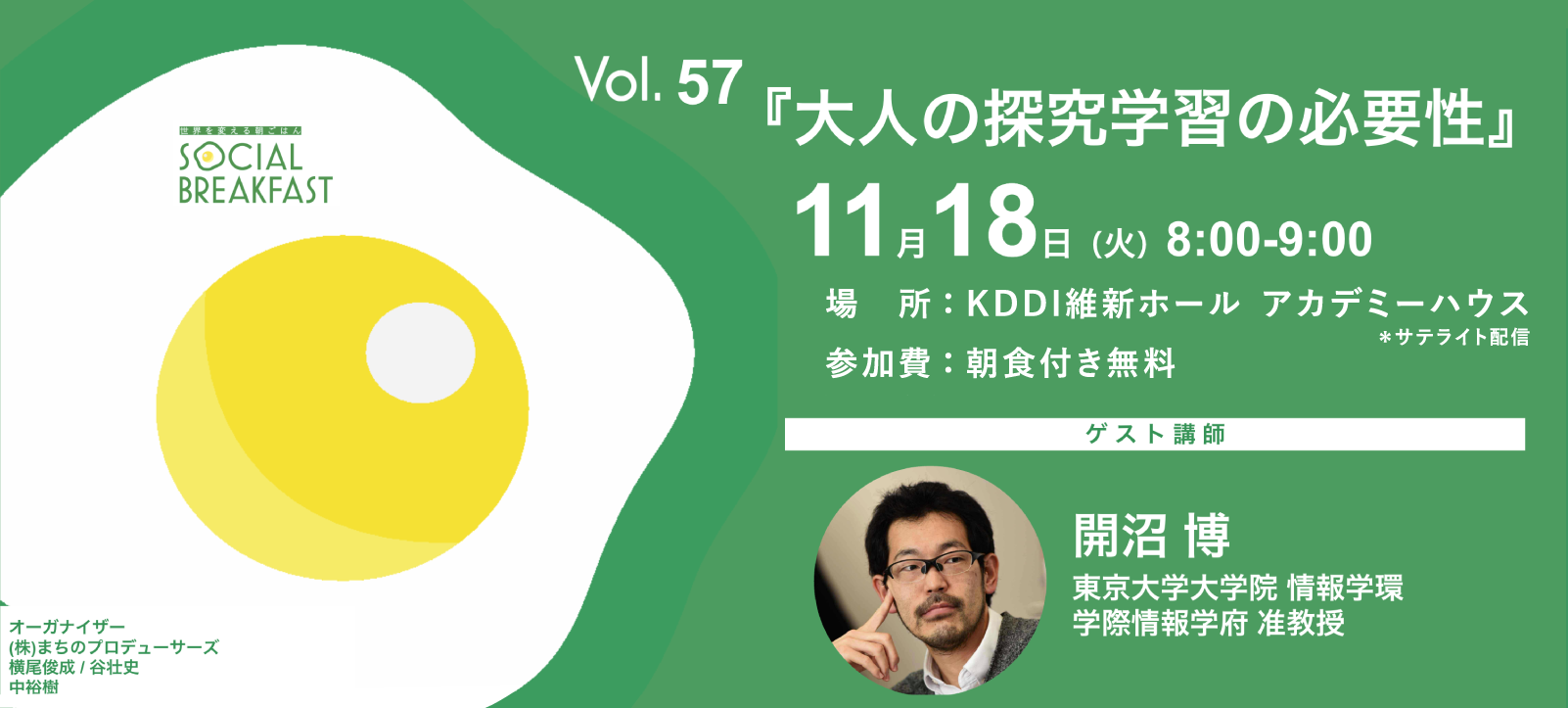 【11/18火8:00】ソーシャルブレックファースト講師:開沼 博さん(東京大学大学院 情報学環・学際情報学府 准教授)
